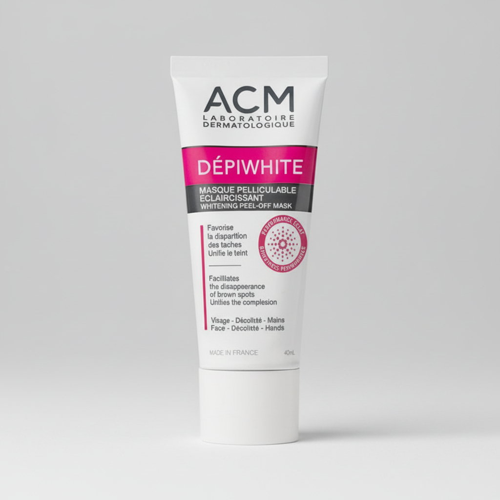 ACM Dépiwhite Masque Pelliculable Éclaircissant est un soin visage qui aide à éclaircir le teint, atténuer les taches pigmentaires et améliorer l’éclat de la peau. Idéal pour une routine anti-taches en Tunisie.