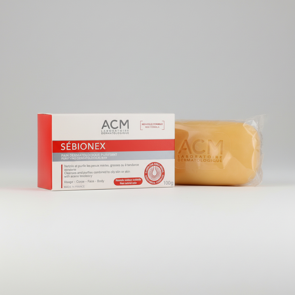 acm sebionex pain dermatologique purifiant nettoie efficacement la peau tout en respectant son équilibre naturel. Ce pain dermatologique purifiant s’adresse aux peaux grasses et à tendance acnéique qui nécessitent un nettoyage quotidien doux mais efficace, notamment en Tunisie où la chaleur favorise l’excès de sébum.