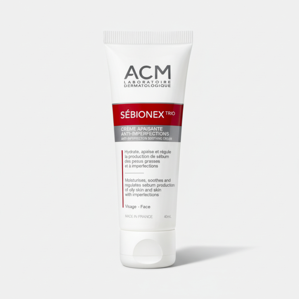 ACM Sébionex Trio Crème est un soin visage complet qui aide à réduire les imperfections, réguler l’excès de sébum et lisser le grain de peau. Idéale pour les peaux à imperfections en Tunisie.