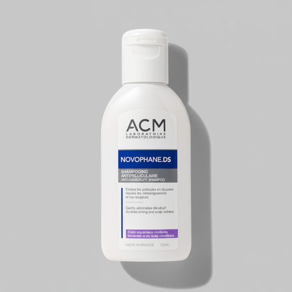 Novophane DS shampooing antipelliculaire ACM est un soin cheveux spécialement formulé pour lutter contre les pellicules et apaiser le cuir chevelu. En effet, ce shampooing traitant de la marque ACM Tunisie agit directement sur les déséquilibres du cuir chevelu afin de réduire les pellicules visibles et les sensations d’inconfort.