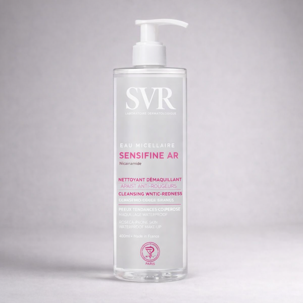 Sensifine AR eau micellaire 400ml SVR nettoie et démaquille la peau tout en respectant sa sensibilité. En effet, cette eau micellaire est spécialement formulée pour les peaux sensibles sujettes aux rougeurs. Ainsi, elle s’intègre parfaitement dans les soins dermatologiques proposés par SVR Tunisie pour le SVR visage.