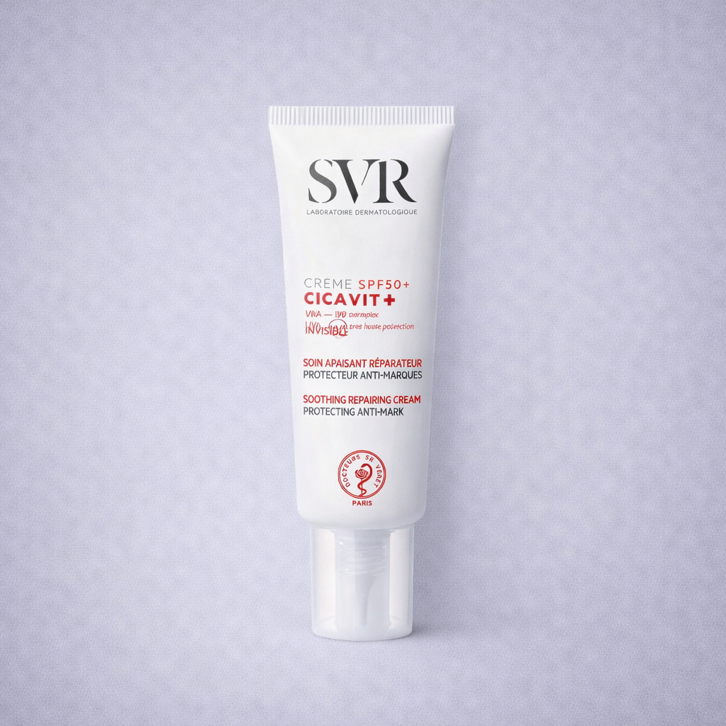 La formule associe des filtres solaires haute tolérance et des agents réparateurs sélectionnés pour accompagner la réparation cutanée tout en assurant une protection efficace, selon les standards de SVR Tunisie.
