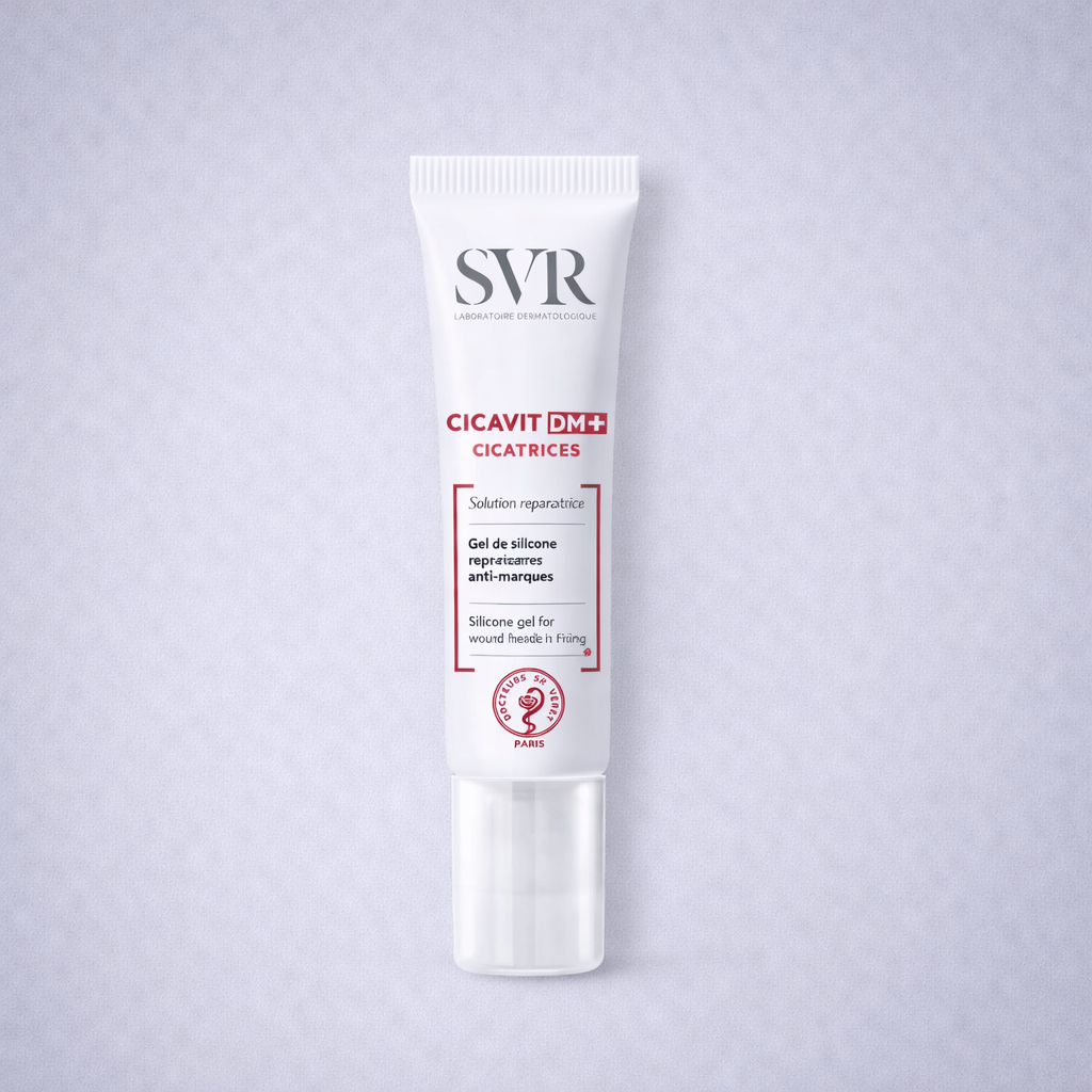 SVR Cicavit DM cicatrices est un gel silicone réparateur qui aide à améliorer l’apparence des cicatrices récentes ou anciennes. Soin SVR Tunisie.