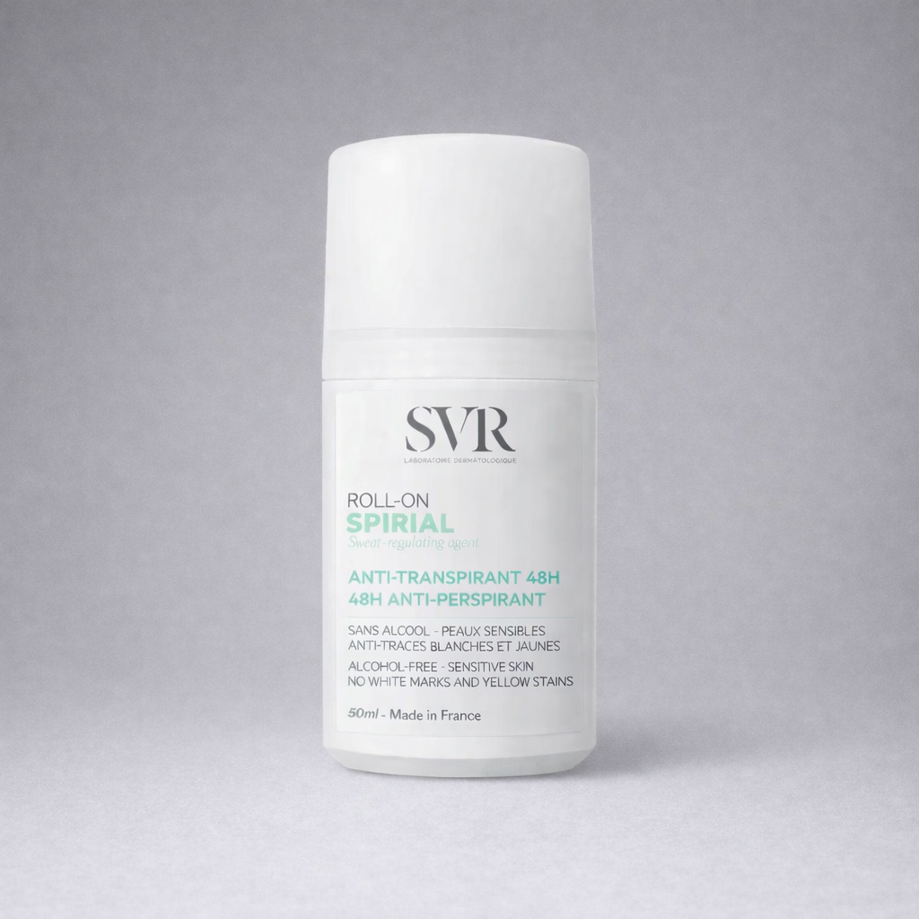 SVR Spirial Roll-On Anti-Transpirant 48h aide à contrôler efficacement la transpiration et les odeurs pendant 48h. Ce déodorant du SVR corps est disponible chez SVR Tunisie.