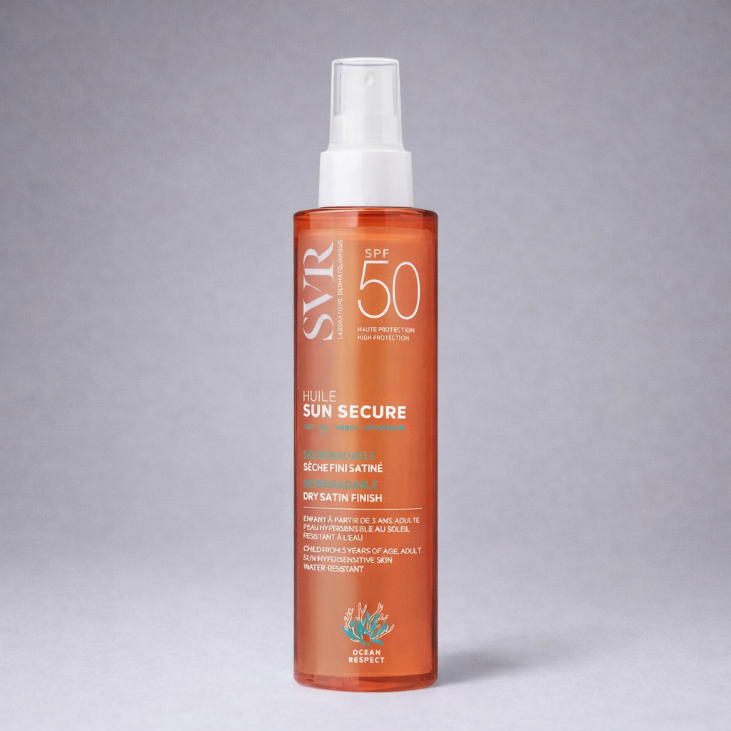 SVR Sun Secure huile sèche SPF50 protège efficacement la peau contre les UV tout en nourrissant sans fini gras. Soin solaire SVR Tunisie.