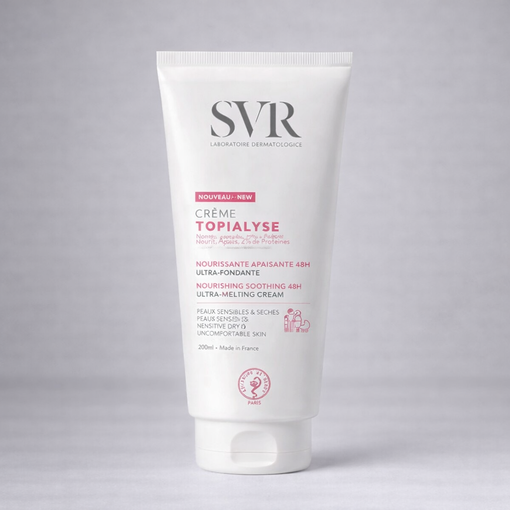 Topialyse creme emolliente SVR est un soin hydratant conçu pour apaiser durablement les peaux sèches, sensibles ou inconfortables. Dès l’application, il aide à restaurer la barrière cutanée et à réduire les sensations de tiraillement. Ainsi, cette crème s’intègre parfaitement dans les solutions dermatologiques proposées par SVR Tunisie pour le SVR visage.