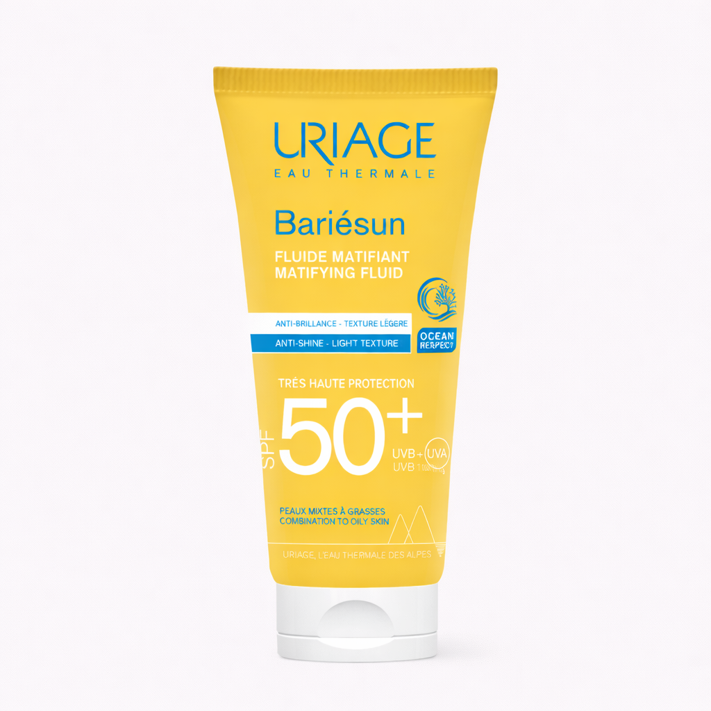 Uriage Bariésun Mat Fluide SPF50+ est un soin solaire visage Uriage en Tunisie conçu pour protéger la peau sensible tout en limitant la brillance.
