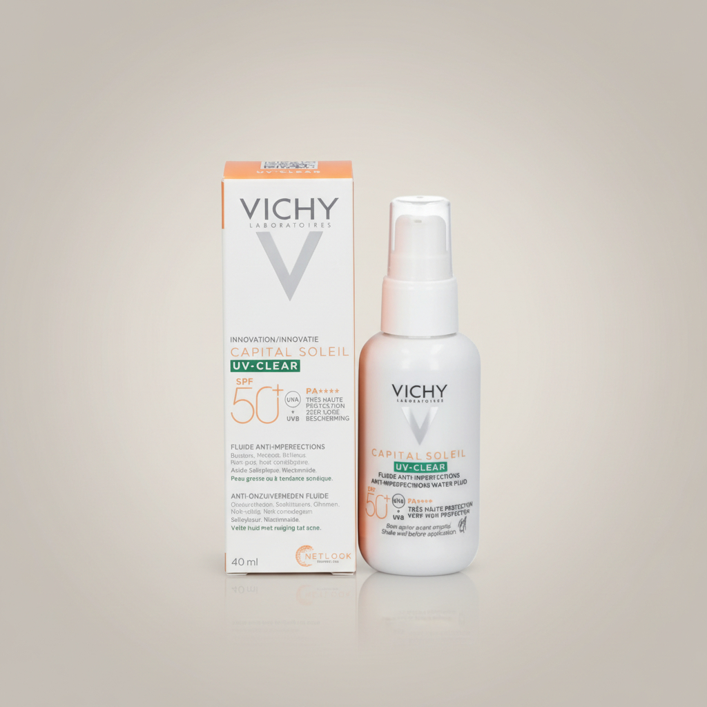 En effet, l’exposition au soleil peut aggraver les imperfections, les marques et les irrégularités du teint. Ainsi, Vichy UV Clear SPF50 protège la peau tout en aidant à contrôler l’excès de sébum et à maintenir une peau plus nette. Par conséquent, le teint paraît plus uniforme et la peau reste protégée tout au long de la journée.